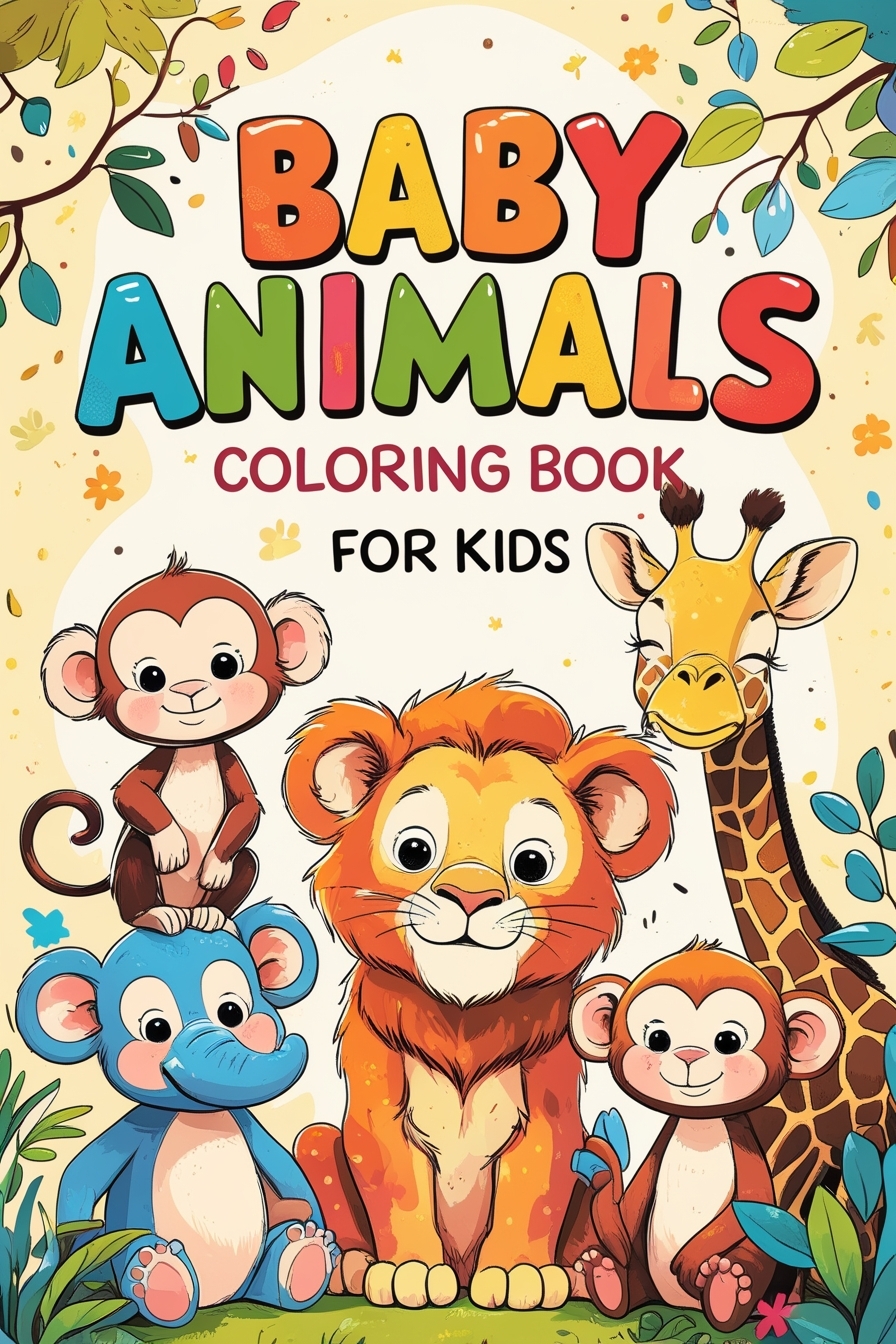 Baby Animals Coloring book for kids, PDF 8.5 x 11-inch pages.