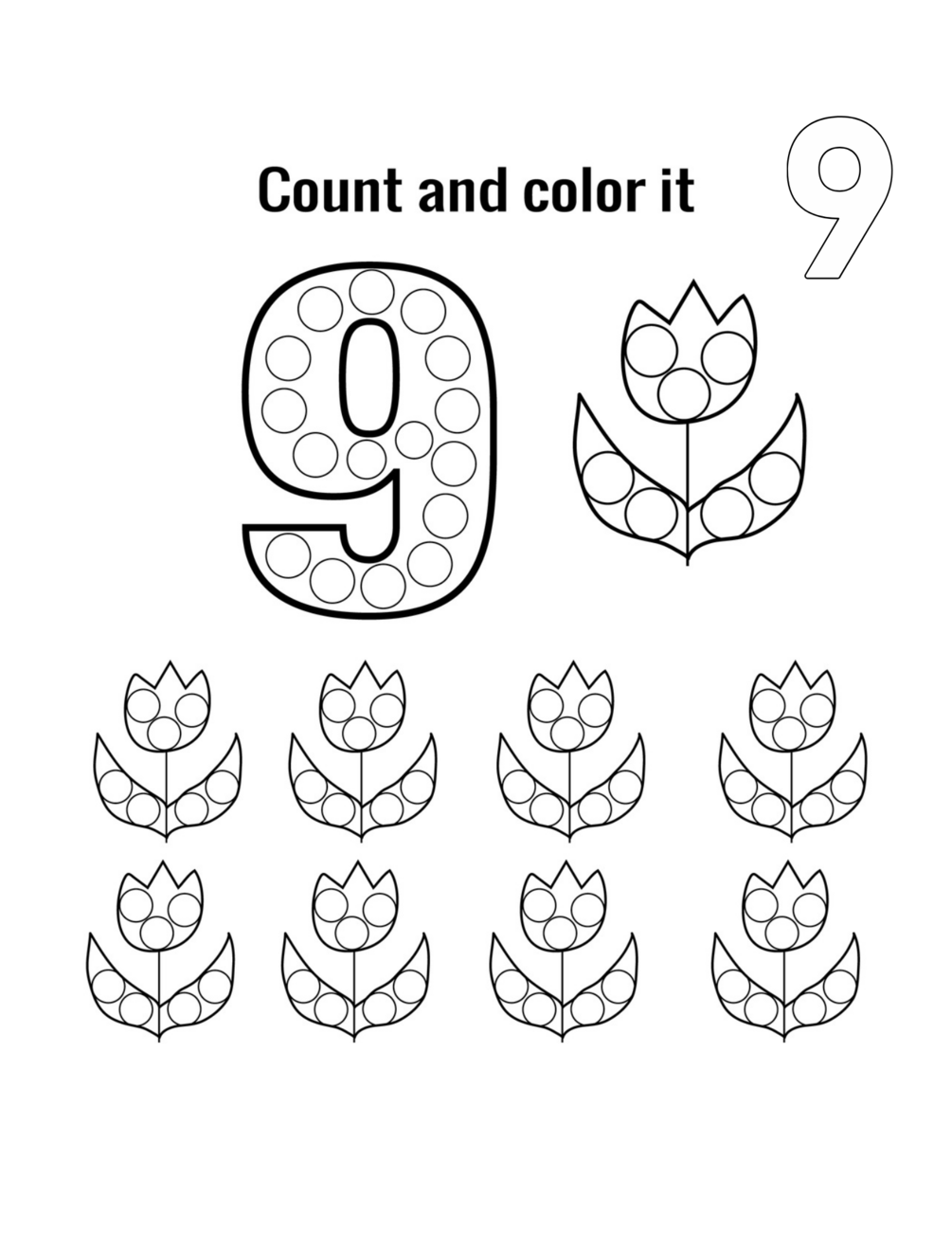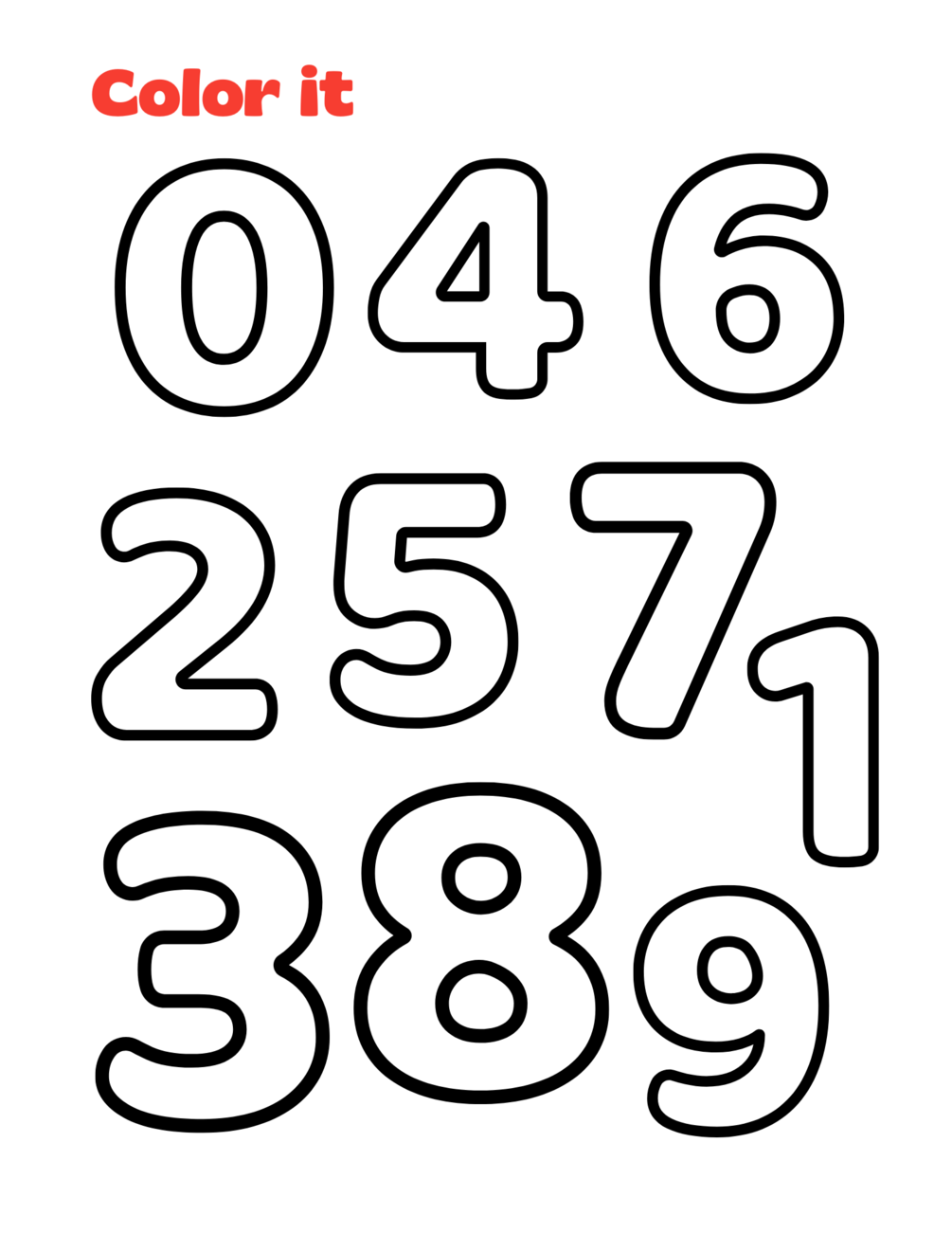 Count and color numbers 1-10, for Kids, 35 PDF Pages (8.5 x 11).
