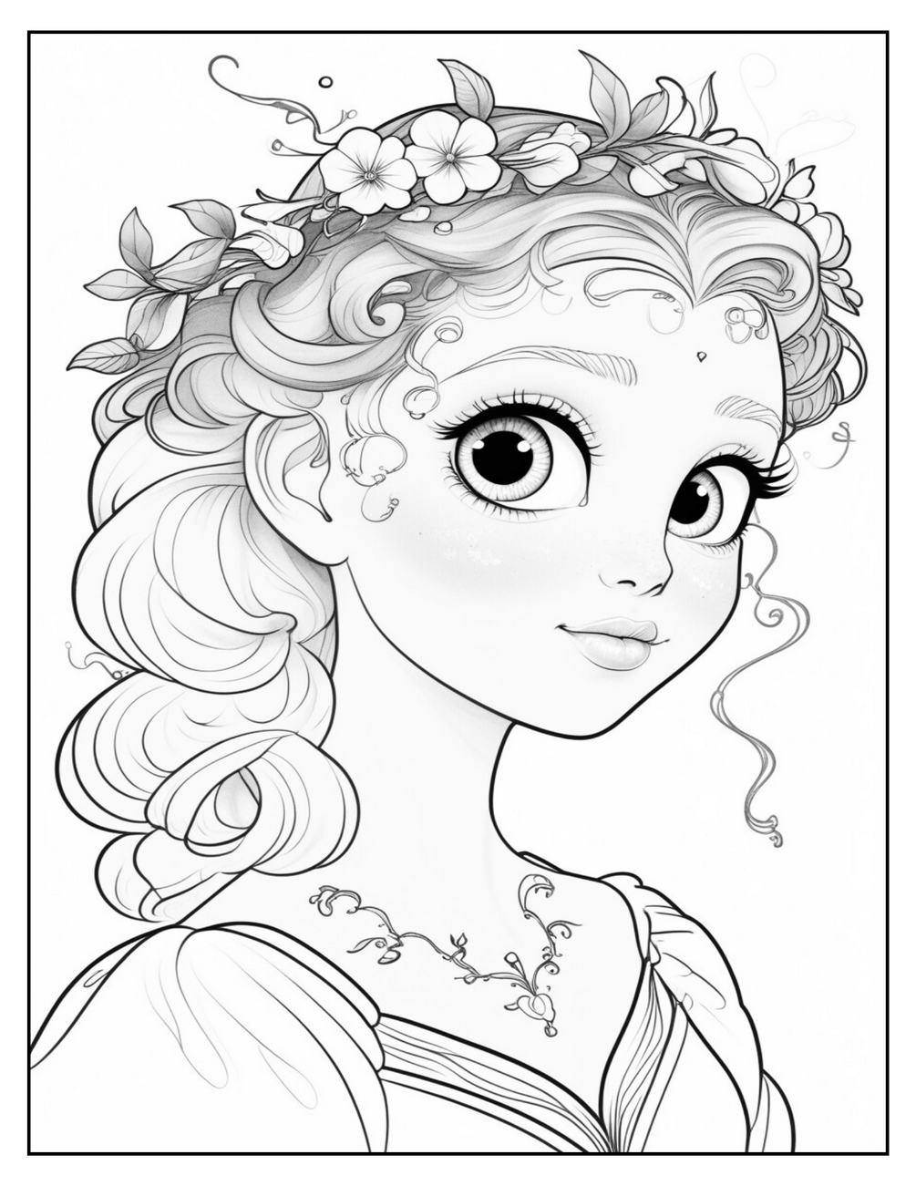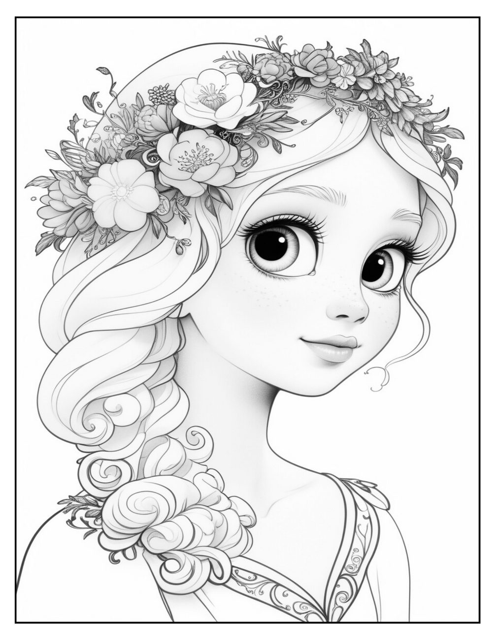 Princess Coloring Book: 60 lovely stress relief unique princess design and flowers coloring book for adults (PDF: 8.5 x 11).